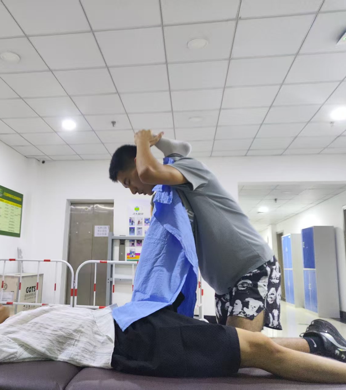 损伤康复协助:协助治疗师为运动损伤患者开展康复训练,包括关节活动度训练、肌力强化训练、为运动员进行被动拉伸