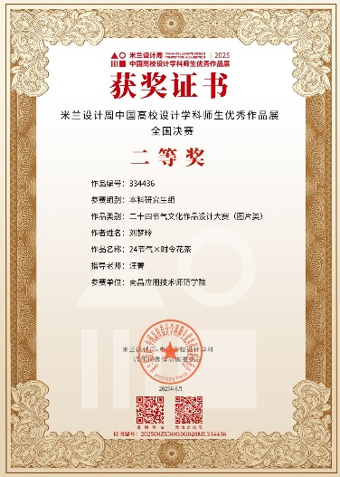 刘梦玲将“读万卷书”与“行万里路”相结合。她不仅注重课堂知识的学习,更积极投身设计实践,在宗波伶、郑奕捷等老师的指导下,将创意转化为具有文化内涵和社会价值的作品。作为学习委员,她乐于分享,主动将参赛经验与学习心得与同学们交流,充分发挥了学生骨干的先锋模范作用,带动集体共同进步。