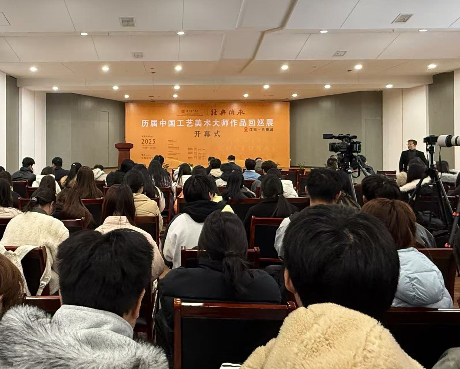 11月18日,《经典传承——历届中国工艺美术大师作品回巡展》共青城站在共青城市博物馆正式启幕。我院组织百余名学生代表以团日活动为载体参与此次展览,将共青团思想引领与传统工艺文化传承深度融合,让青年学子在沉浸式观展中感受中华优秀传统文化的魅力。