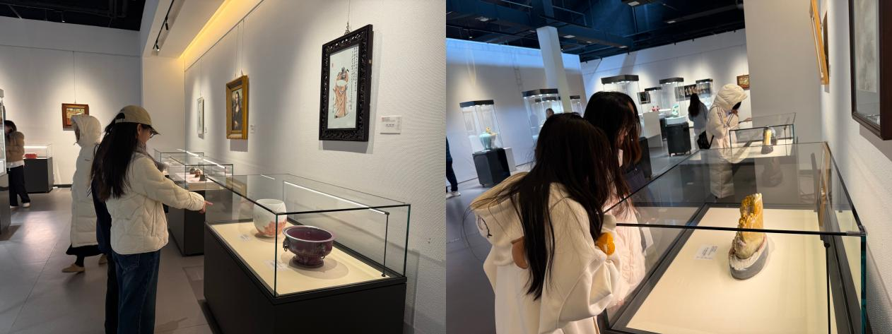 活动当天,我院学子在团委工作人员与志愿者的引导下有序观展。展览现场,汇聚百位中国工艺美术大师创作的112件珍品,涵盖陶瓷、漆艺、雕刻等十一大门类,每一件作品都展现着传统工艺的精湛技法与文化底蕴。同学们认真聆听讲解员介绍作品背后的创作故事与技艺传承历程,部分同学在现场记录观展笔记、交流感悟,将工艺知识与文化思考融入其中。