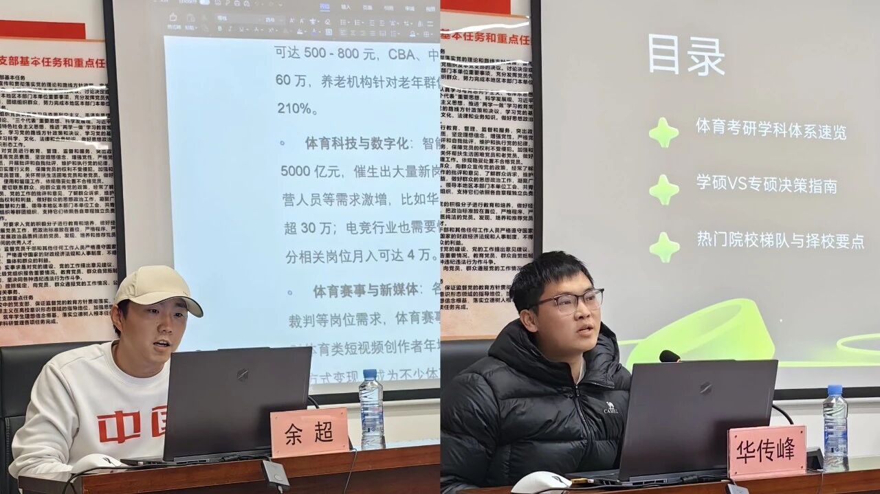 针对有意继续深造的同学,华传峰重点围绕境内外升学,进行了系统梳理与策略解析。他从院校选择、备考节奏、复习资源、复试技巧等关键环节展开,为同学们厘清了不同路径的优势与准备要点,帮助大家根据自身情况制定合理的升学计划,增强备考信心与竞争力。余超则就高质量就业方向展开深入讲解,聚焦体育培训、健康产业等新兴领域,细致分析了各类优质岗位的能力要求与发展前景,引导学生拓宽就业思路,增强职场核心竞争力。