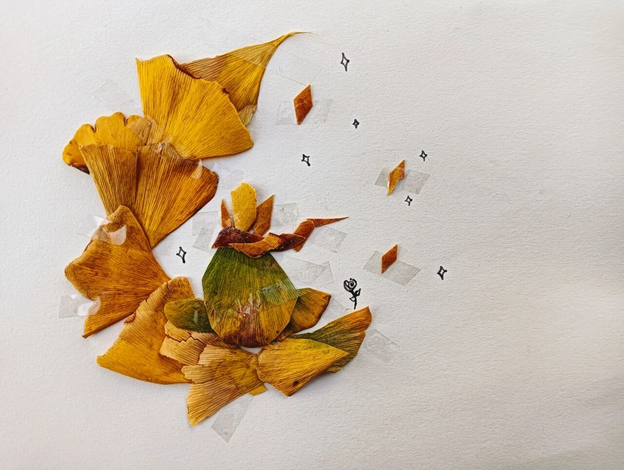 从落叶收集到作品展示,同学们用创意让秋日校园的“废弃物”变成了国风艺术品,也让艺术疗愈的种子在校园里生根发芽。