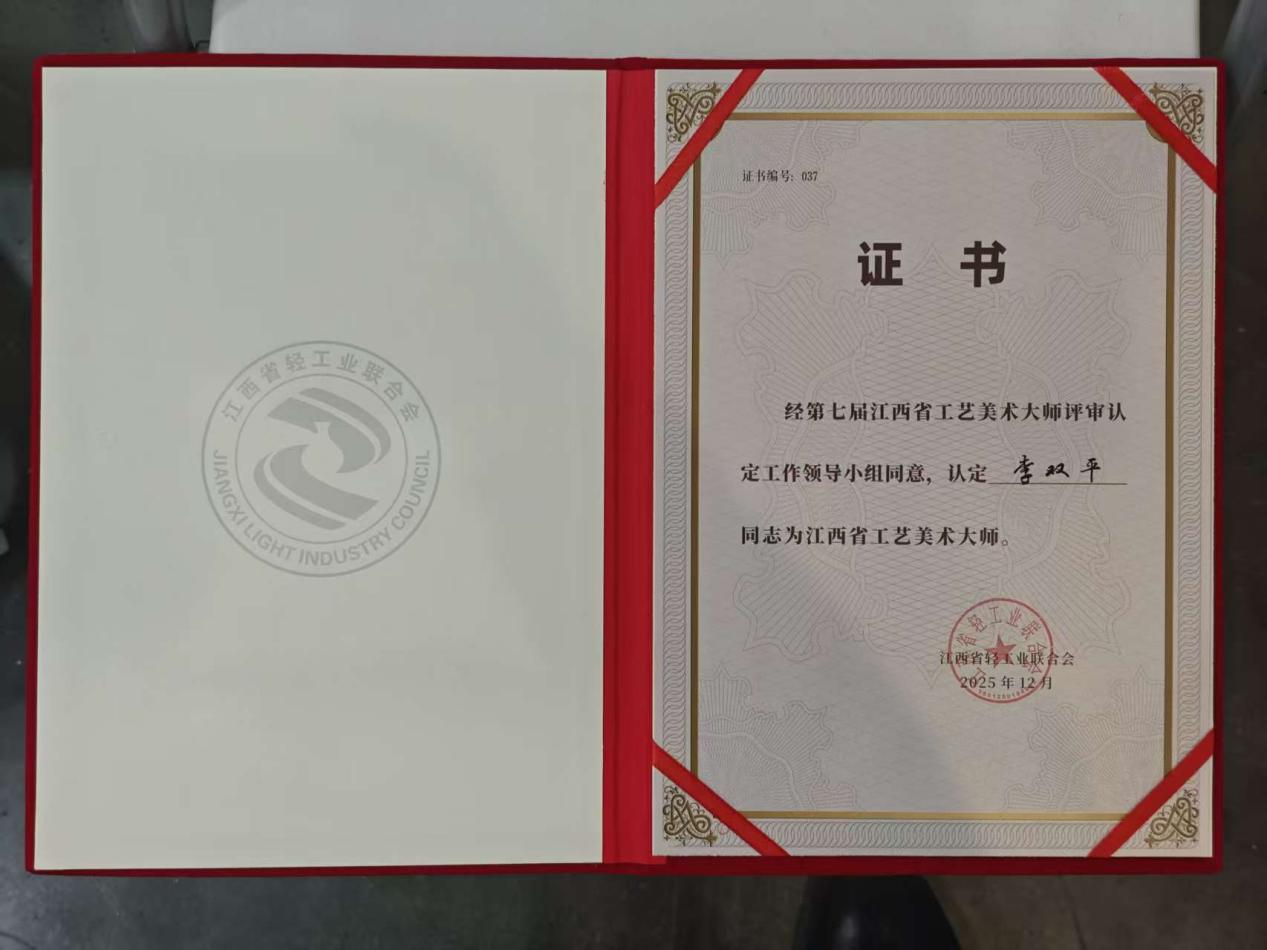 艺术与体育学院李双平老师获评第七届江西省工艺美术大师