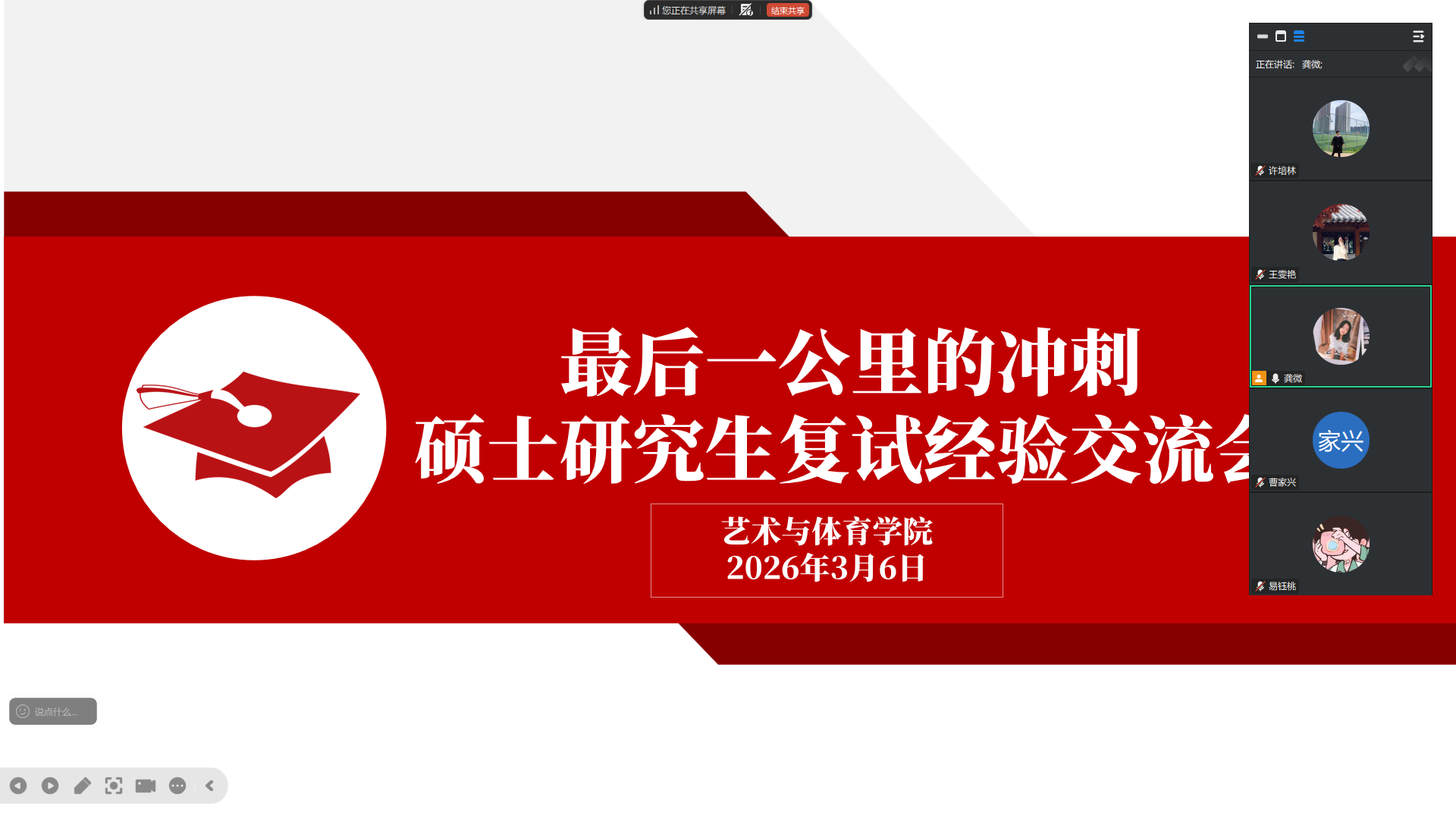 艺术与体育学院举办“最后一公里的冲刺”研究生复试经验交流会