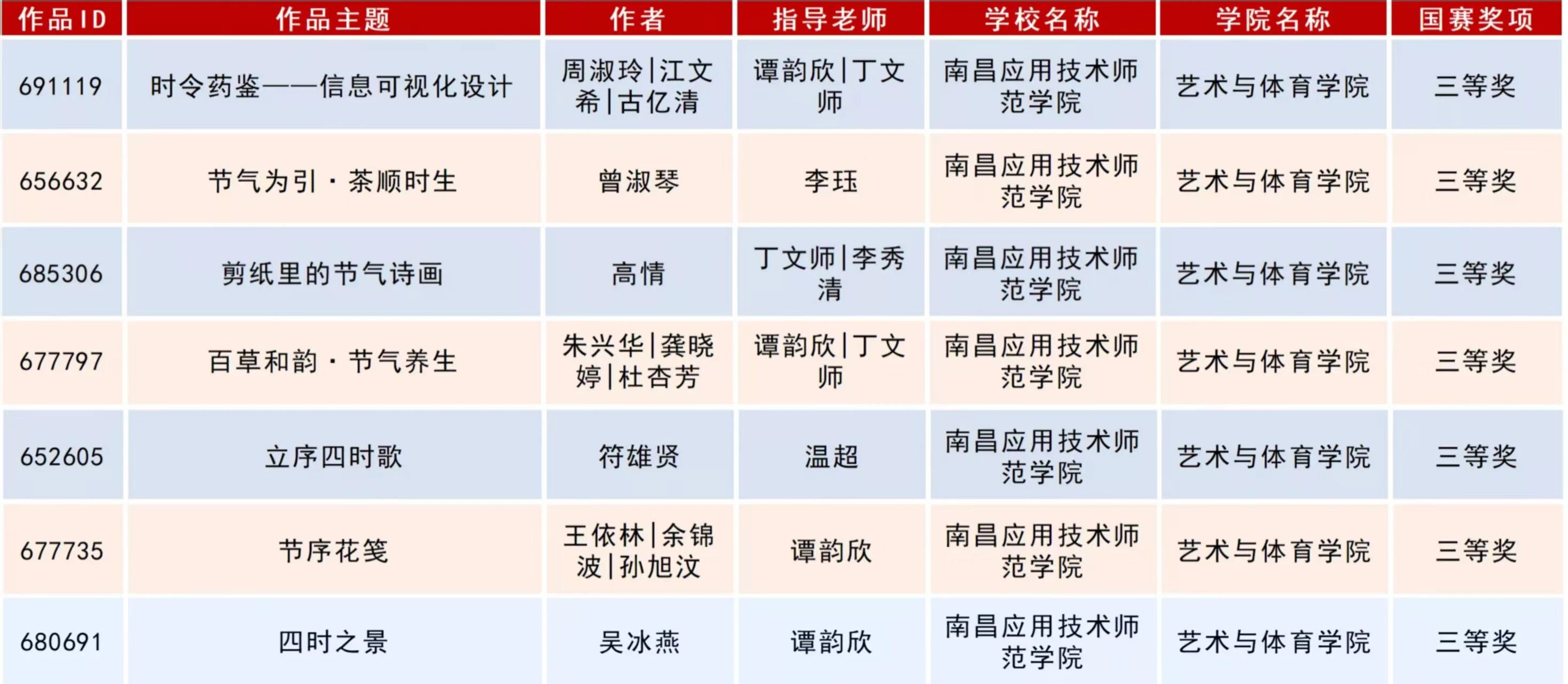 在二十四节气文化作品设计大赛中,斩获7项奖项。赛事以“触摸时间·魅力节气”为主题,倡导师生围绕“中国人的时间制度”深入发掘节气文化内涵,以节气或节气体系所承载的国人对时间、自然的理解为切入点进行文创创作,并鼓励突破传统物象表达、发掘“时间”背后的故事,我院师生共斩获7项奖项。具体获奖情况如下